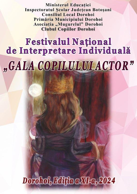 În perioada 18-19 mai 2024, Clubul Copiilor Dorohoi, în parteneriat cu Primăria Municipiului Dorohoi, Consiliul Local Dorohoi, Casa Municipală de Cultură și Asociația Mugurelul Dorohoi, va organiza Festivalul-Concurs de interpretare individuală „Gala Copilului Actor”, ediția a XI-a, în municipiul Dorohoi.