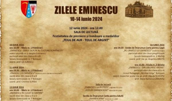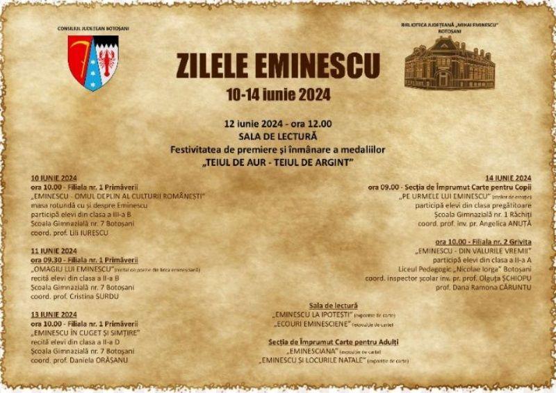Zilele Eminescu se vor desfășura în perioada 12-16 iunie 2024, la Ipotești și Botoșani.