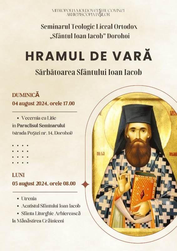 Seminarul Teologic din Dorohoi serbează în perioada 04-05 august, ziua Sărbătorii Sfântului Ioan Iacob, hramul de vară.