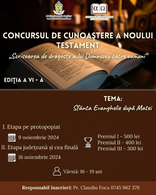 Dorind să cunoaștem împreună mai multe din aceste învățături minunate, îi invităm pe tinerii cu vârsta cuprinsă între 16 -19 ani să participe la ediția de anul acesta a Concursului de cunoașterea Noului Testament.