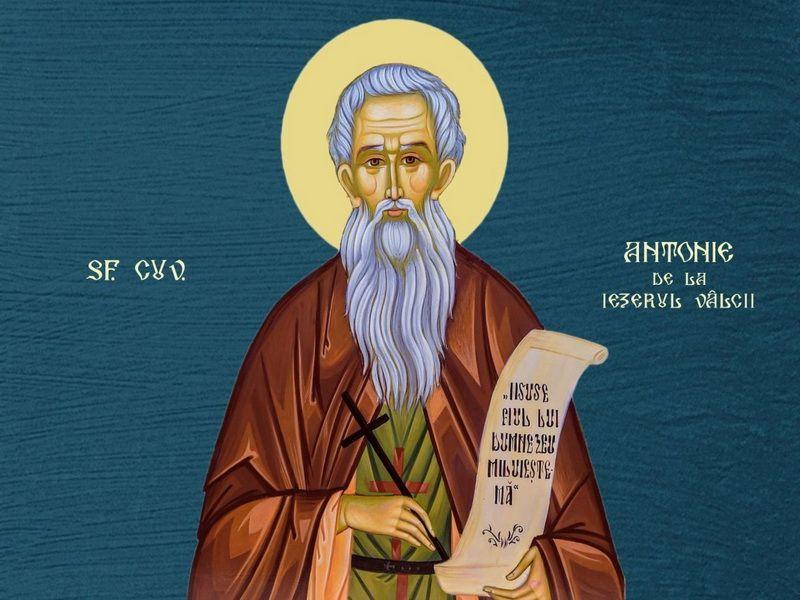 Sfântul Cuvios Antonie era de neam român şi s-a născut în 1628 la Ianina, în Munţii Pindului. A crescut în dreapta credinţă mergând de mic la sfânta biserică, unde îşi găsea desfătarea sufletească. La 20 de ani s-a stabilit în Râmnicu Vâlcea, unde şi-a întemeiat o familie, iar pe fiul său, Mihail, l-a încredinţat slujirii preoţeşti. A trăit pe vremea binecredinciosului voievod Matei Basarab (1632-1654) şi a Sfântului voievod martir Constantin Brâncoveanu (1688-1714).