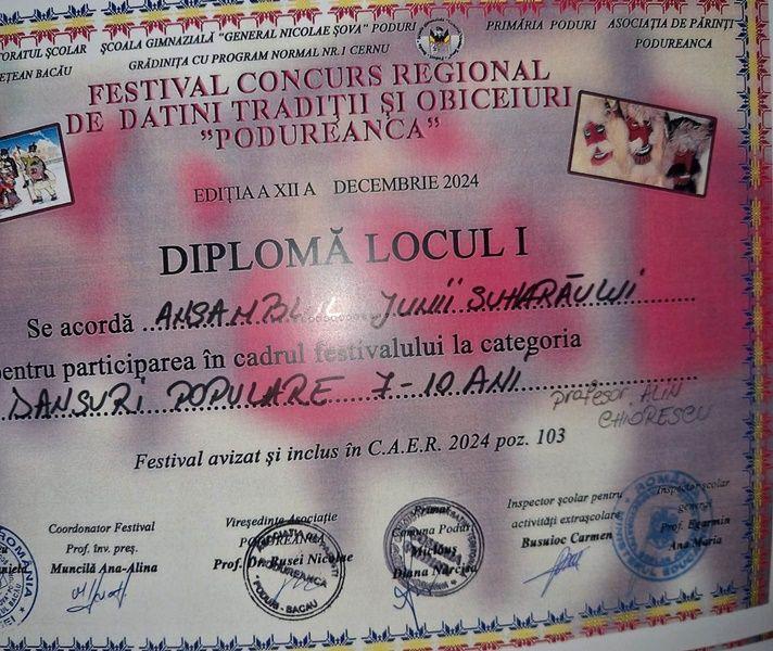 • Premiul I la dansuri populare – Secțiunea de dansuri populare a fost una dintre celemai apreciate, iar Junii Suharăului au obținut locul întâi datorită coregrafiilor pline de energie și autenticitate.