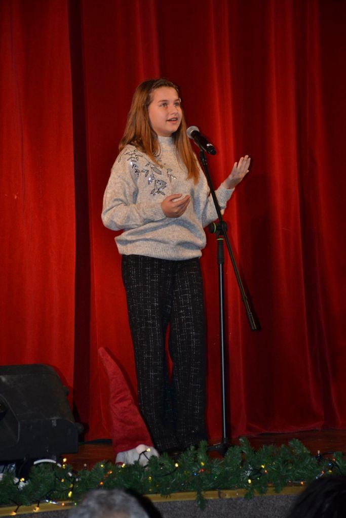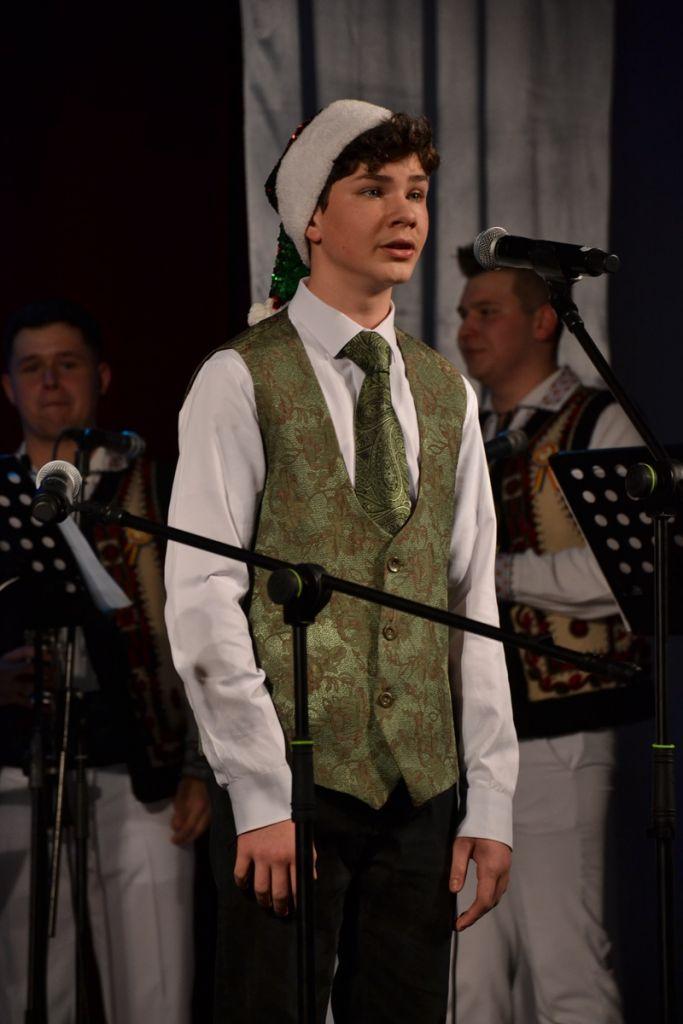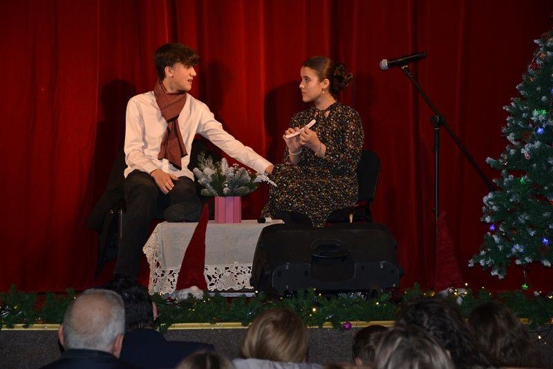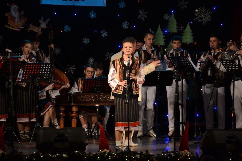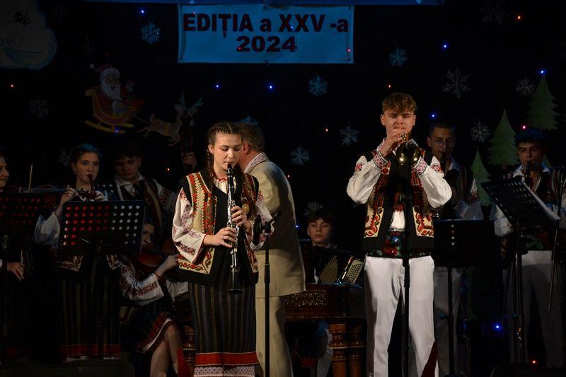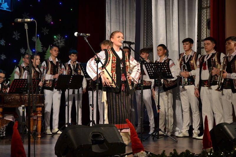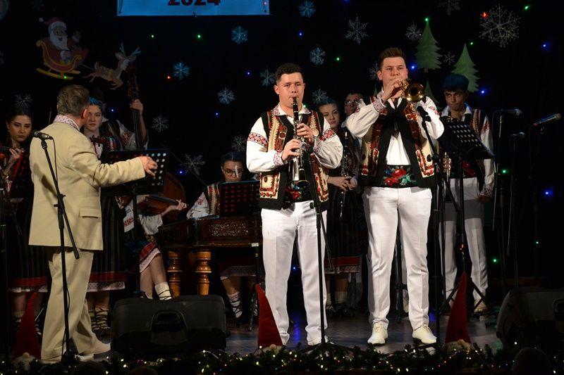 Spectacolul de miercuri, 18 decembrie 2024, a început cu momente de teatru – poezie și schițe umoristice – interpretate de elevi ai cercului „Educație civică” sub coordonarea prof. Irina-Maria Miron. Tot în prima parte au evoluat și formațiile de dansuri populare „Firicelul”, „Brâulețul”, „Alunelul” și „Stejărelul”, într-un colaj conceput și pus în scenă de prof. Constantin Dicu. Seara a continuat cu un regal folcloric, sub bagheta dirijorului prof. Marcel Dupu. Orchestra „Mugurelul”, soliștii vocali și soliștii instrumentiști au interpretat colinde, melodii de joc și de ascultare.