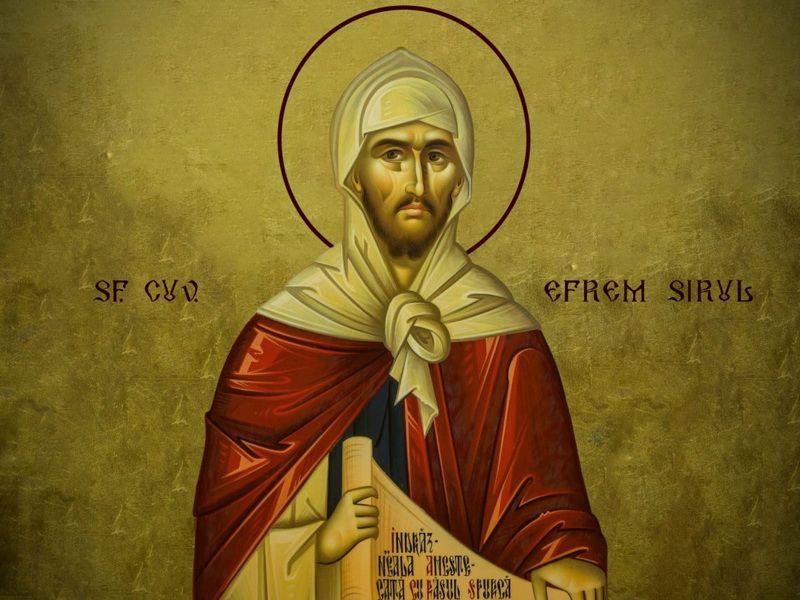 Sfântul Efrem Sirul (†373) era din Mesopotamia, născut la Nisibe. De neam era sirian, iar părinţii săi erau creştini. A învăţat carte la Şcoala din Nisibe, însă, atunci când perşii au ocupat cetatea, şcoala s-a mutat la Edesa, păstrând limba siriană. Aceasta se întâmpla pe la anul 360. Sfântul Efrem a trăit sub împăraţii romani începând cu marele Constantin (306-337) şi până la Valens (364-378).
