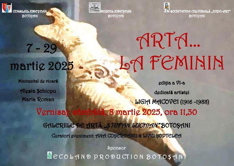 Muzeul Județean Botoșani găzduiește, în perioada 8-29 martie 2025, în spațiul Galeriilor de Artă „Ștefan Luchian” Botoșani, expoziția națională ,,Arta... la feminin”. Invitata de onoare a evenimentului este artista Marinela Măntescu Isac, membru U.A.P.R. București.