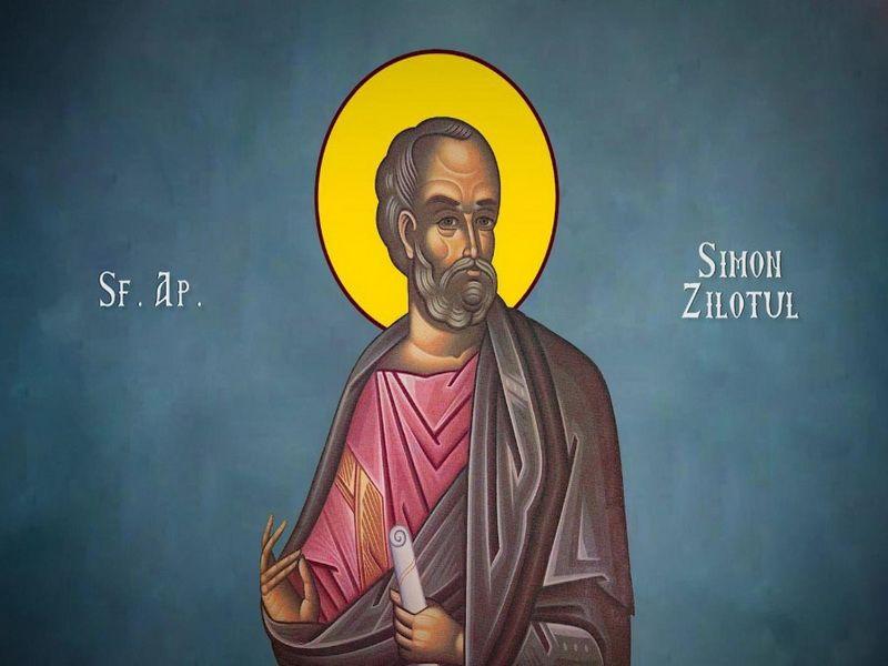 Sfântul Simon Zilotul, a fost unul dintre cei 12 Apostoli ai Mântuitorului Iisus Hristos şi era galileean. I se spune Zilotul sau Cananeul, pentru a-l deosebi de Sfântul Simon Petru şi de Sfântul Simeon „fratele Domnului”, urmaşul Sfântului Iacob la Episcopia Ierusalimului. Tradiţia spune că el ar fi fost mirele de la nunta din Cana Galileei, unde Mântuitorul Hristos a săvârşit prima Sa minune, la rugămintea Maicii Sale Preacurate, prefăcând apa în vin.