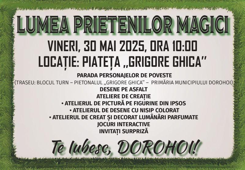 Primăria și Consiliul Local Dorohoi vă invită vineri, 30 mai 2025, începând cu ora 10.00, în Lumea prietenilor magici!