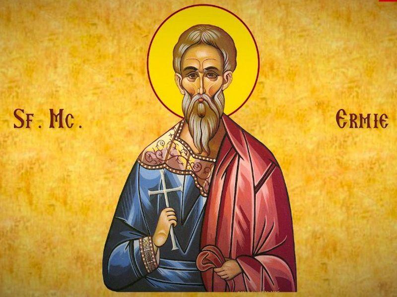 Sfântul Mucenic Ermie era un ostaş creştin, mare la stat şi cărunt de bătrâneţe, care a trăit în Comane în zilele împăratului Antonin Piul (138-161). Pentru că era un bun creştin, mărturisindu-L cu mult curaj pe Mântuitorul Iisus Hristos, a fost prins de păgâni şi dus înaintea dregătorului Sebastian pentru a fi judecat.