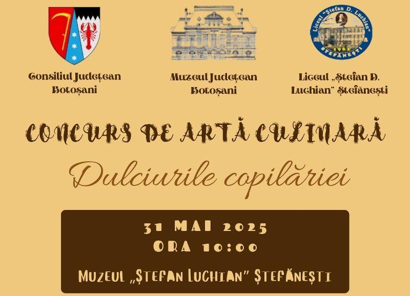 Muzeul „Ștefan Luchian” Ștefănești organizează sâmbătă, 31 mai 2025, de la ora 10.00, Concursul de Artă Culinară „Dulciurile copilăriei”, eveniment dedicat celor care doresc să readucă în prim-plan gustul și aroma deserturilor care le-au încântat copilăria.