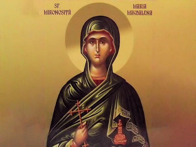 Sfânta Maria Magdalena a fost uceniţă şi mironosiţă a Mântuitorului Iisus Hristos, cea dintâi şi cea mai mare dintre toate uceniţele şi purtătoarele de mir. Era din Galileea, din cetatea Magdala, de la hotarele Galileei cu Siria. Mântuitorul i-a luminat cugetul cu lumina unei noi vieţi, din dumnezeiască dragoste. Din acel moment, Maria s-a făcut următoare lui Hristos, slujindu-I cu credinţă.