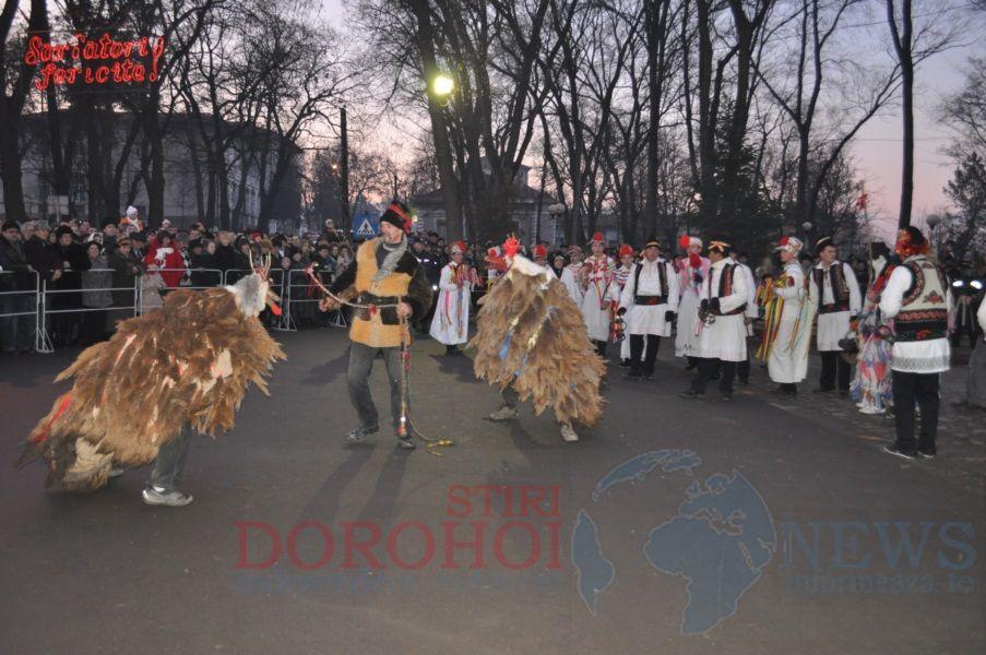 Timp de patru ore au evoluat la parada din fața primăriei Dorohoi, formaţii de datini şi obiceiuri printre care s-a aflat și Banda Broscăuți, care a fost prezentă cu 25 de membrii costumați în țărani, căiuți, căpitan, capre și cioban. (DorohoiNews.ro)