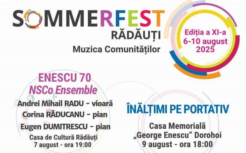 În perioada 6-10 august va avea loc „Sommerfest Rădăuți –Muzica Comunităților”, festival ajuns la cea de a XI-a ediție, care se va desfășura la Casa de Cultură, Galeriile de Artă „Traian Postolache”, Templul Mare – Sinagoga Rădăuți și Muzeul Memorial „George Enescu” din Dorohoi.