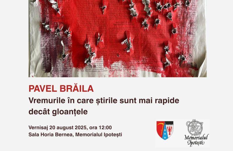 Memorialul Ipotești – Centrul Național de Studii „Mihai Eminescu” găzduiește, în Sala de expoziții „Horia Bernea”, începând cu data de 20 august, până pe 15 septembrie 2025, expoziția personală a lui Pavel Brăila, „Vremuri în care știrile sunt mai rapide decât gloanțele”. Vernisajul va avea loc pe 20 august 2025, ora 12:00, în prezența artistului.