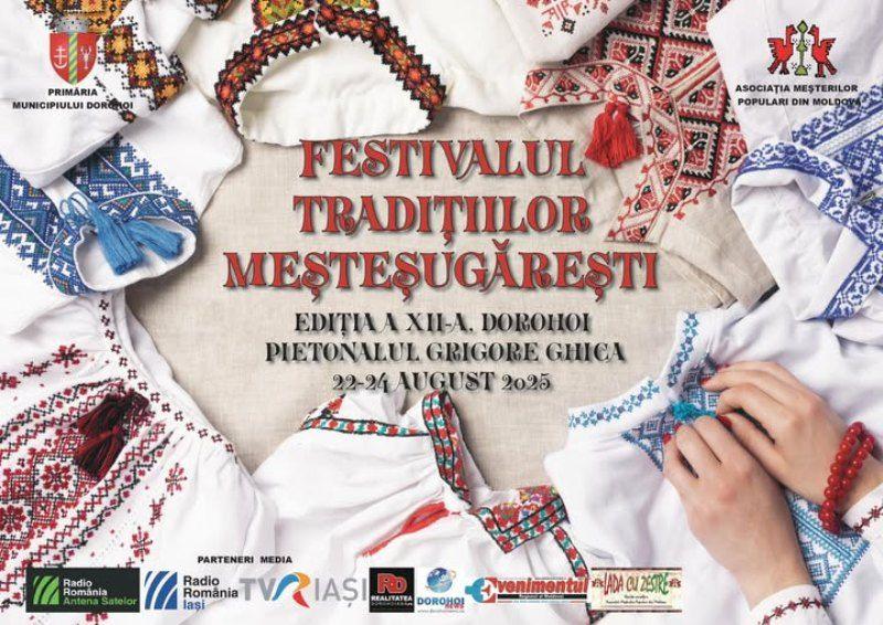 Festivalul Tradițiilor Meșteșugărești, ediția a-XII a - un eveniment deosebit dedicat tradiției, meșteșugurilor și valorilor tradiționale românești, organizat din nou la Dorohoi, în perioada 22 - 24 august 2025, pe Pietonalul „Grigore Ghica” Dorohoi.