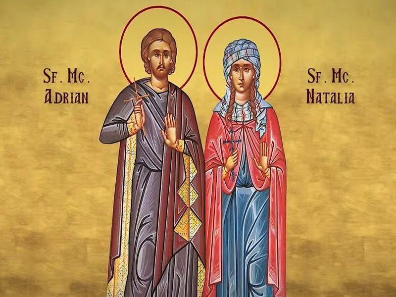 Mucenicul Adrian şi soţia sa Natalia erau din cetatea Nicomidiei şi au pătimit în zilele împăratului Maximian (286-305). Când a ajuns în Nicomidia, împăratul s-a închinat la zei și a poruncit ca toţi cei care cred în Hristos să fieprinşişichinuiţi. Doar douăzeci şi trei de creştini au fost prinşi atunci şijudecaţi. În timpul judecăţii, Adrian, un bărbat cinstit din Nicomidia, care ţinea obiceiul păgân, i-a întrebat pe mărturisitorii lui Hristos de ce suferă atâtea. Creştinii i-au răspuns că suferă pentru a primi bunătăţile cele pregătite de Dumnezeu.