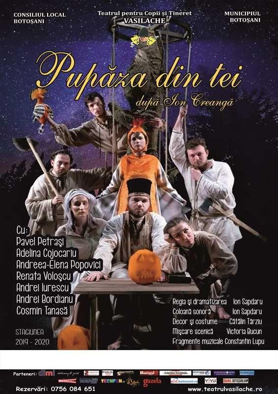 Teatrul pentru Copii şi Tineret  „Vasilache” anunță pentru această săptămână spectacolul „Pupăza din tei”, în zilele de joi, 18 septembrie 2025, de la ora 18:00 şi duminică, 21 septembrie 2025, cu începere de la orele 11:00 şi 12:30.