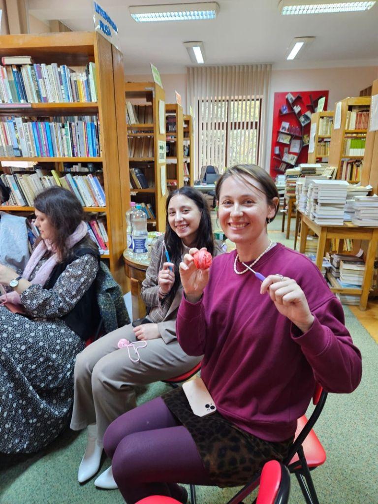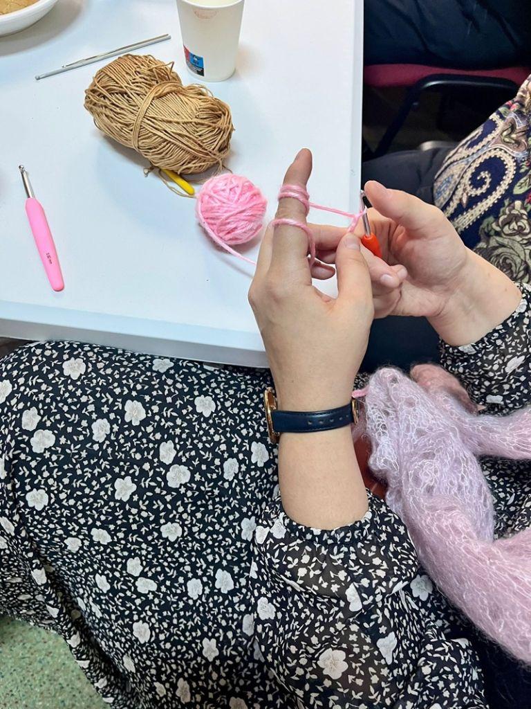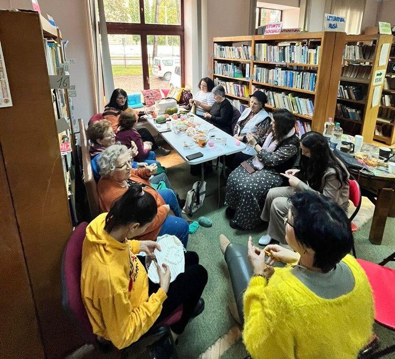 Deși titlul de „șezătoare” i-a îndemnat să și imagineze o simplă adunare, un cerc de lectură, voluntarii bibliotecii au fost luați prin surprindere de ceea ce urmau să desfășoare: un curs de croșetare. Aceștia, nefiind lăsați să se arunce de unii singuri într o provocare dificilă, în ajutorul lor au venit un grup de doamne, care, înzestrate cu acest talent, și au expus creațiile în fața adolescenților încurajându-i și îndemnându-i prin răbdare și delicatețe să învețe să se coordoneze, să croșeteze.