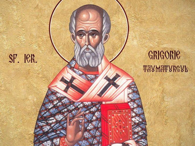 Sfântul Grigorie Taumaturgul a trăit în timpul împăratului Aurelian (270-275) şi s-a născut în Neocezareea Pontului, aproape de Armenia, din părinţi bogaţi. După moartea tatălui său, pe când Grigorie avea 14 ani, mama sa l-a trimis la dascăli de seamă, unde a învăţat limba latină şi arta oratoriei, încât mulţi ajunseseră să se minuneze de darurile sale. Sfântul Grigorie a studiat și în Alexandria Egiptului, unde a fost ucenicul lui Origen (185-254), împreună cu fratele său Atinodor. Tot aici a învăţat şi medicina.