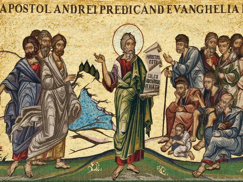 După Înălţarea Mântuitorului la cer şi după Cincizecime, Apostolii au tras la sorţi şi au mers în toată lumea pentru predicarea cuvântului Evangheliei. Atunci, Sfântului Andrei i-a căzut sorţul să meargă în Bitinia, la Bizanţ, în Tracia şi Macedonia, până la Dunăre şi Sciţia (adică Dobrogea de astăzi) şi până în Crimeea. Sfântul Apostol Andrei a fost martirizat la Patras, lângă Corint, fiind răstignit cu capul în jos pe o cruce în forma literei X, căreia i s-a spus „Crucea Sfântului Andrei”.