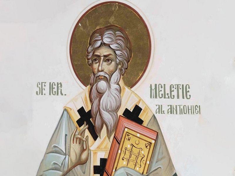 Sfântul Ierarh Meletie (†381) era de neam din Armenia şi s-a născut din părinţi creştini. Pentru credinţa, evlavia şi blândeţea sa, pentru înţelepciunea sa şi mai ales pentru dragostea lui fierbinte faţă de Dumnezeu, a fost silit să fie hirotonit Episcop în Sevastia Armeniei. Nu după multă vreme a fost mutat ca Episcop al Veriei, în Siria. A vieţuit din vremea lui Constanţiu (337-361) până pe vremea lui Teodosie cel Mare (379-395), în timpul luptelor celor mari ale Bisericii împotriva uneltirilor ariene.