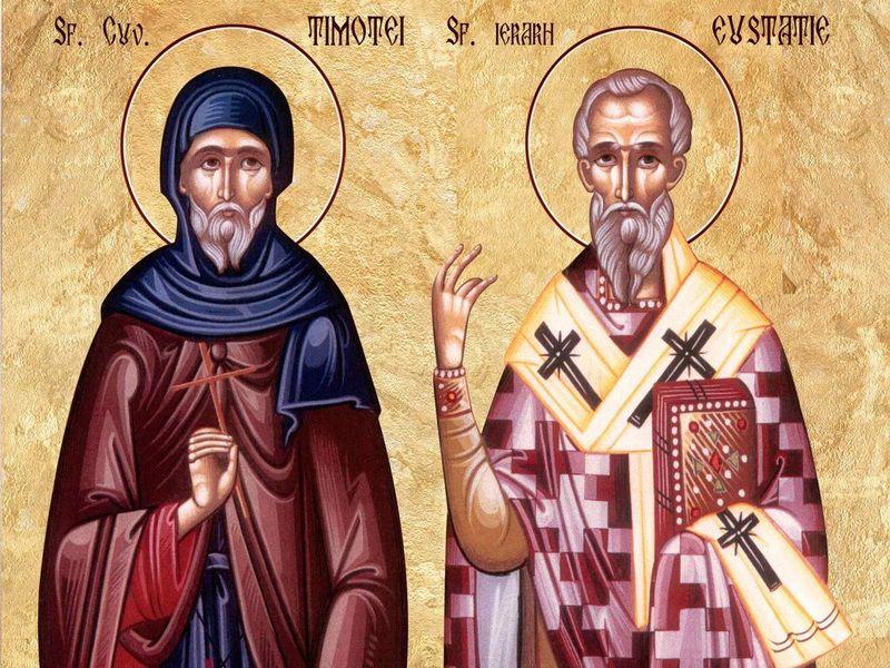 Tot astăzi, Biserica Ortodoxă îl pomeneşte şi pe Sfântul Ierarh Eustatie, Arhiepiscopul Antiohiei (†325). Acesta a participat la lucrările întâiului Sinod Ecumenic de la Niceea, unde a combătut cu mult curaj erezia lui Arie. Fericitul Ieronim şi Sfântul Ioan Gură de Aur spun că Sfântul Eustatie a fost exilat pe nedrept în Tracia şi apoi în Iliria, dar el a rămas statornic în credinţa sa. A murit în cetatea Filipi din Macedonia, iar trupul său a fost adus în Antiohia, pe când împărăţea Zenon (476-491). Sfântul Ierarh Eustatie este socotit unul din stâlpii cei mai de seamă ai Bisericii.