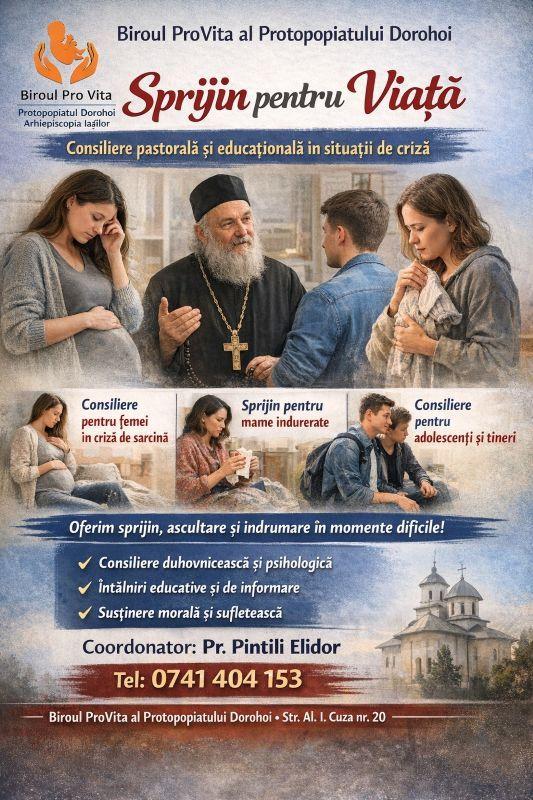 Programul „Sprijin pentru Viață” se va desfășura pe parcursul anului, iar persoanele interesate pot solicita informații și sprijin prin intermediul Biroului ProVita al Protopopiatului Dorohoi.