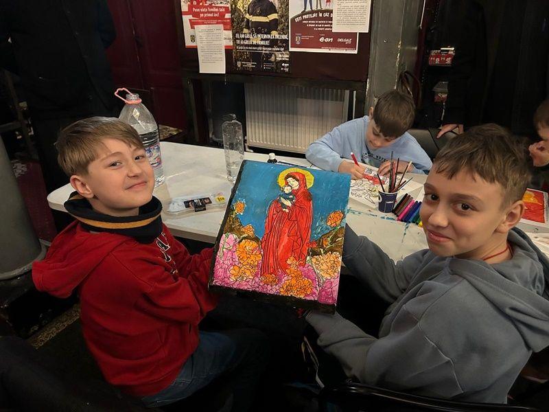 Două zile mai târziu, sâmbătă, 28 februarie, copiii s-au reunit pentru un atelier de iconografie intitulat „Maica Domnului – Ocrotitoarea familiei și a copiilor orfani”. După ce au văzut câteva icoane ale Maicii Domnului și au aflat că ea este ocrotitoarea tuturor copiilor, cei mici au pictat, pas cu pas, o icoană pe care să o dăruiască mamei sau bunicii. Pe fundal auriu sau roșu, au desenat veșmintele și chipul Maicii Domnului, iar la final și-au așezat lucrările la un mic vernisaj. Fiecare copil a spus cui va dărui icoana și ce înseamnă pentru el Maica Domnului. Atelierul s-a încheiat cu o rugăciune și cu îndemnul ca, acasă, să ofere icoana cu un sărut de mână și vorbele: „Maica Domnului să te ocrotească!”.