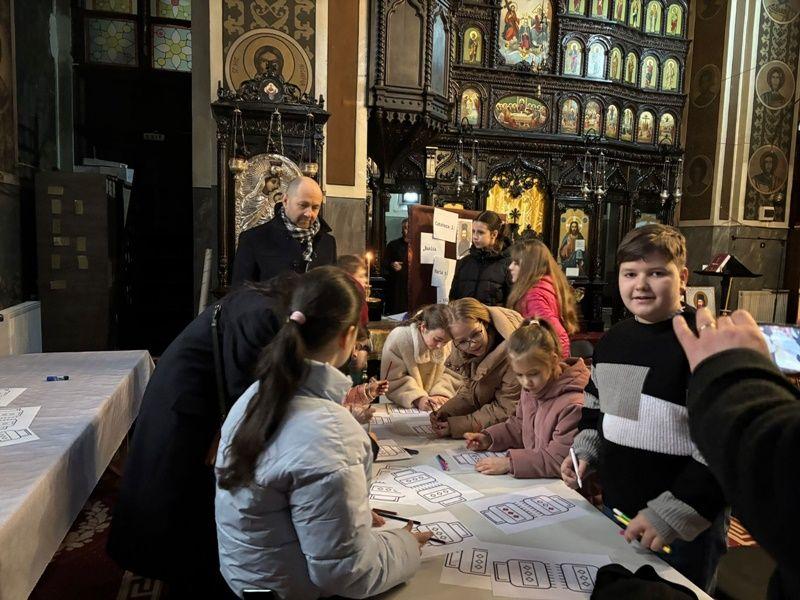 La Catedrala „Adormirea Maicii Domnului” din Dorohoi a început un proiect frumos menit să îi apropie pe cei mici de sfinții din județul Botoșani. Joi, 26 februarie, a avut loc prima întâlnire din cadrul proiectului catehetic „Comoara credinței din Țara de Sus: Sfinții botoșăneni și binecuvântarea familiei creștine”, iar sâmbătă, 28 februarie, copiii au participat și la un atelier de iconografie.