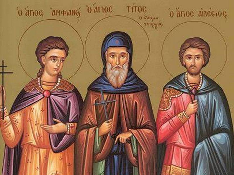 Astăzi, Biserica noastră îi pomeneşte şi pe Sfinţii Mucenici Amfian şi Edesie. Aceştia au fost fraţi după trup şi părăsind locurile natale, au plecat în Cezareea Palestinei, unde, s-au încredinţat Sfântului Pamfil, care i-a şi botezat. Sfântul Amfian a pătimit mult pentru Hristos, în timpul împăratului Maximian. Pentru că l-a oprit pe un păgân să aducă jertfe idolilor, a fost prins, spânzurat şi strujit cu unelte ascuţite de fier pe tot trupul, până la oase. Dar el nu a încetat să mărturisească, în chinuri fiind, numele lui Iisus Hristos.