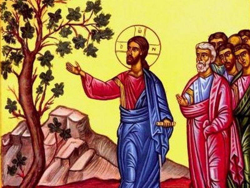 Despre smochinul neroditor, Sfinţii Evanghelişti Matei şi Marcu spun că s-a uscat, pentru că Iisus, pe când venea din Betania spre Ierusalim, a zis: „De acum înainte, rod din tine nimeni în veac să nu mănânce” – ne spune Sfântul Evanghelist Marcu (11, 14), iar Sfântul Evanghelist Matei redă puţin diferit cuvintele Mântuitorului: De acum înainte să nu mai fie rod din tine în veac! Şi smochinul s-a uscat îndată (Matei 21, 19).