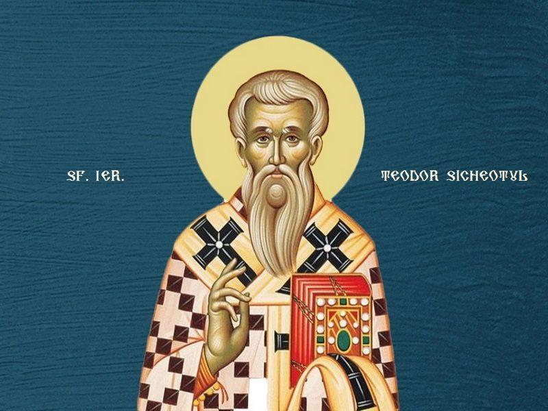 Sfântul Ierarh Teodor Sicheotul, Episcopul Anastasiopolei, a fost din ţara Galatiei, din satul Sicheot, de lângă Ancira (Ankara de astăzi), şi a trăit pe vremea împăratului Tiberiu al II-lea (578-582), până în vremea împăratului Heraclie (610-641). Dumnezeu era cu el, pentru că din cea mai fragedă vârstă avea mare dragoste faţă de El, dar şi faţă de Sfântul Mare Mucenic Gheorghe, purtătorul de biruinţă, fiind înclinat spre rugăciune şi multă nevoinţă. La vârsta de 14 ani, cu învoirea mamei sale, s-a retras într-o peşteră de munte, lângă o biserică a Sfântului Gheorghe, unde a vieţuit mai mulţi ani în post şi rugăciune, încât se mirau toţi de acest copil minunat.