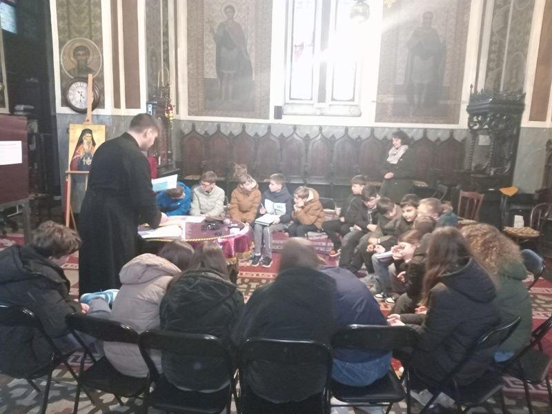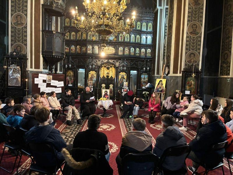Cea de-a doua cateheză, desfășurată sâmbătă 7 martie, a fost dedicată Sfinților Paisie Olaru și Cleopa Ilie de la Sihăstria, purtând titlul „Părinți duhovnicești pentru lumea întreagă”. De data aceasta, tinerii au descoperit un „ghiozdan spiritual” plin de simboluri – o crenguță de brad, un metanier și o carte de rugăciuni – iar prin povestea „Liniștea și Tunetul” au înțeles cum cei doi sfinți, deși aveau firi diferite, au rămas uniți prin aceeași dragoste infinită. Lucrând pe grupe, copiii au învățat că ascultarea aduce ordine în familie, rugăciunea este ca o discuție caldă cu un prieten drag, iar smerenia ne învață să fim buni și modești. Un moment special l-a reprezentat scrierea „Scrisorii către duhovnic”, când fiecare copil și-a deschis inima pe hârtie. La plecare, toți au primit o listă cu „Misiuni Secrete” de îndeplinit acasă – de la „Surpriza Ordinii” până la „Misiunea Tăcerii” – pentru a înțelege că fapta bună făcută în ascuns are un preț îndoit în fața lui Dumnezeu.