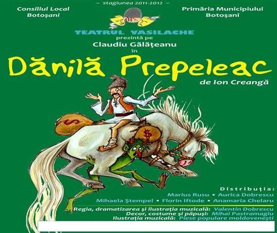 Cunoaşteţi povestea „Dănilă Prepeleac”? Cu siguranţă. Cu toţii, ca şi mine v-aţi amuzat de păţaniile lui, dar mai ales de ce au păţit dracii. Să vă povestesc. Dar, nu. Mai bine veniţi să urmăriţi povestea la teatru. Veţi vedea un spectacol cu actori şi păpuşi, cu muzică populară autentică, destinat copiilor între 5 şi 10 ani” (Valentin Dobrescu, regizor artistic)