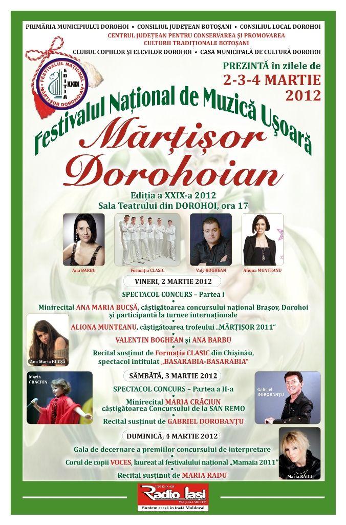 Evenimentul se va desfăşura în perioada 2-4 martie; 2 şi 3 martie-zile de concurs, iar 4 martie-Gala Laureaţilor. Pe data de 1 martie, va avea loc preselecţia concursului la Sala Teatrului din Dorohoi.