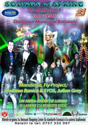 Superconcertul „Sounds of Spring” are loc la Botoşani, pe Stadionul Municipal Botoşani, pe 22 aprilie 2012. Evenimentul va avea ca invitaţi pe: Mandinga, Fly Project, Andreea Banica & SYOS şi Julian Gray şi va fi completat de un megashow de lumini şi lasere cu roboţii SYOS!