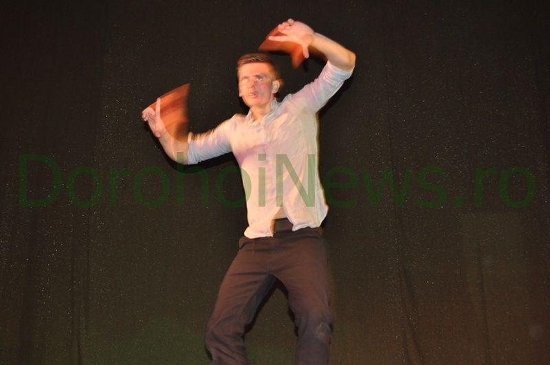 În aplauzele publicului prezent la spectacolul „Fii diferit, nu indiferent!”, George Boghian şi Alin Pavăl (Piciu), dorohoienii participanţi la emisiunea „Românii au talent”, au pus în scenă un numar de dans extraordinar.