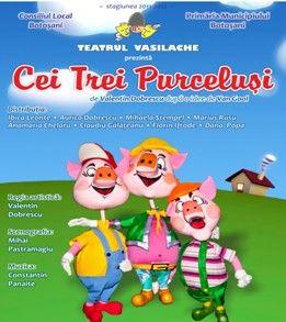 Teatrul Vasilache pune în scenă, duminică ,29 aprilie 2012,  de la orele 11.00 şi 12,30 premiera spectacolului „Cei trei purceluşi”de Valentin Dobrescu, după o idee de Van Gool.