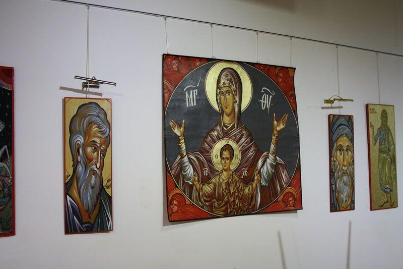 Icoanele expuse sunt lucrate pe suporturi diferite (lemn şi pânză) şi reprezintă Sfinţi în picioare sau bust şi compoziţii cu scene din arta neo-byzantină, lucrate în tehnici iconografice diverse, de la inserţii în foiţă de aur, până la expresii supradimensionate a unor chipuri de Sfinţi. (DorohoiNews.ro, Andrei B.)