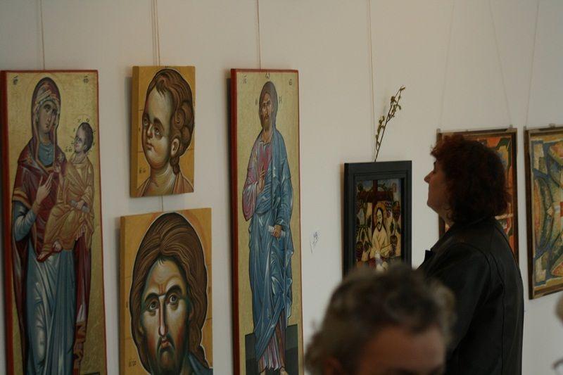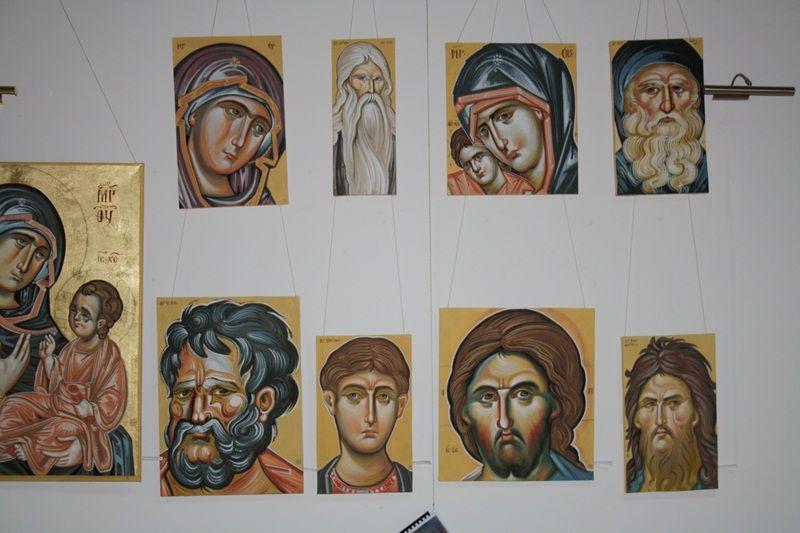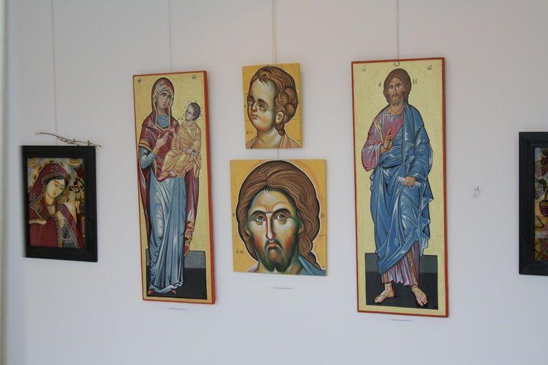 Icoanele expuse sunt lucrate pe suporturi diferite (lemn şi pânză) şi reprezintă Sfinţi în picioare sau bust şi compoziţii cu scene din arta neo-byzantină, lucrate în tehnici iconografice diverse, de la inserţii în foiţă de aur, până la expresii supradimensionate a unor chipuri de Sfinţi. (DorohoiNews.ro, Andrei B.)