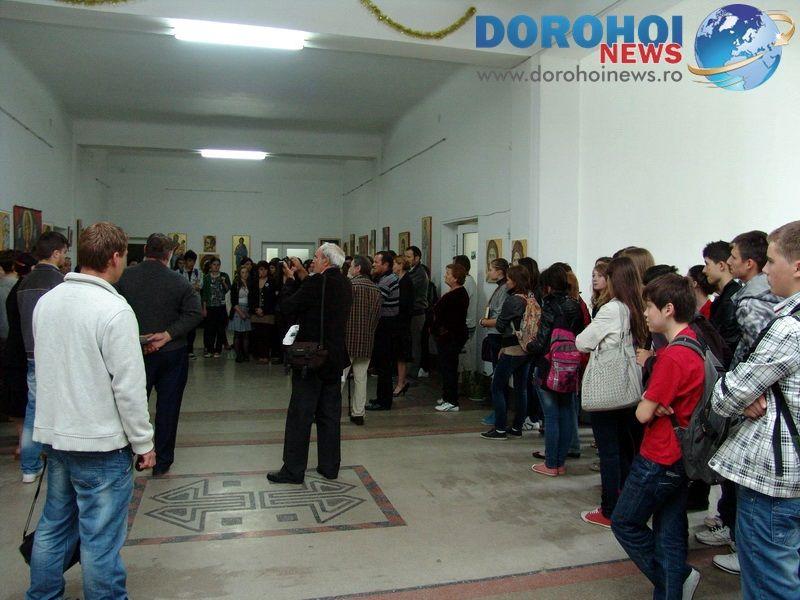 Casa Municipala de Cultura Dorohoi a gazduit marti, 8 mai 2012, vernisajul unei inedite expozitii de icoane apartinand lui Constantin Ungureanu. In fata iubitorilor de arta, a liceenilor de la Colegiul National “Grigore Ghica” Dorohoi, Pictorul Aurelian Antal a aratat ca “Arta plastica ar trebui vorbita in contextual istoriei disciplinei. In lucrarile expuse, intalnim lumea sacrului, in care omul a avut totdeauna tendinta de a-si face reprezentari. Pictura pe care o creeaza ortodocsii isi are sorgintea in demersurile apostolilor lui Iisus Hristos, care intr-o faza incipienta au transmis mesajul crestin imagistic. Pictorul Constantin Ungureanu realizeaza prin icoanele expuse o asimetrie a portretului, incadrandu-se in rigorile temei: evidentierea personajului simbol, nuantarea valoriei liniei, exprimarea mesajului, a dominantelor de culoare.”