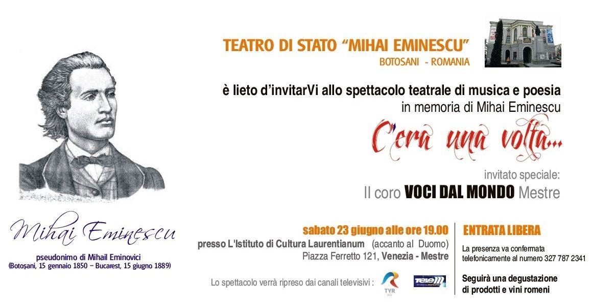 În urmă cu o lună de zile (23 iunie 2012) un eveniment puţin mediatizat a făcut cinste culturii botoşănene. Cu prilejul deplasării actorilor de la Teatrul “Mihai Eminescu” din Botoşani la Veneţia, pentru a-l omagia pe poetul naţional român, Clubul Fotografilor din Botoşani (prin Relu Oneaga si Flavius Damean) au vernisat o inedită şi interesantă expoziţie în care au prezentat, in manieră transfigurată artistic, meleagurile extremităţii estice a Uniunii Europene.
