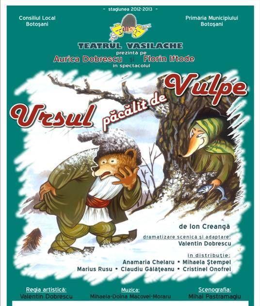 Duminică, 30 septembrie, de la orele 11,00 şi 12,30, în sala Teatrului pentru Copii şi Tineret „Vasilache”, cei mici, dar şi părinţii şi bunicii lor sunt invitaţi să vizioneze premiera spectacolului „Ursul păcălit de vulpe”,  de Ion Creangă, dramatizare şi adaptare scenică Valentin Dobrescu. Regia artistică - Valentin Dobrescu, scenografia  - Mihai Pastramagiu, muzica    -  Mihaela-Doina Macovei-Moraru