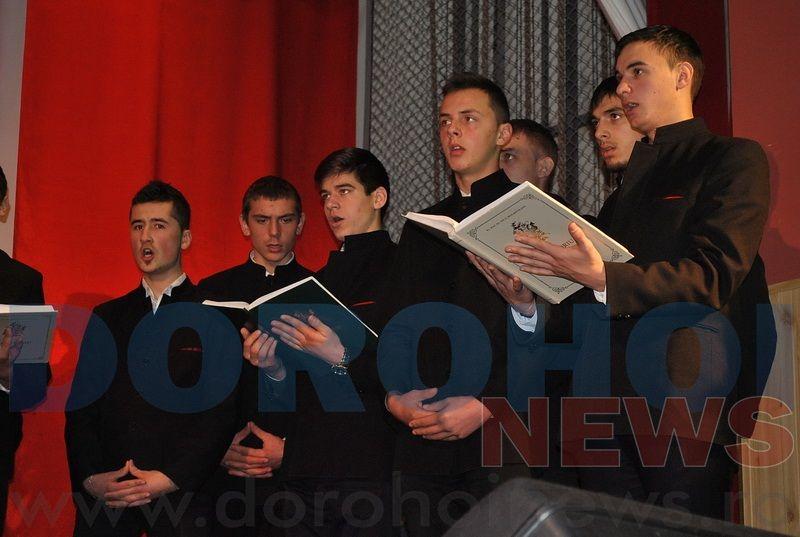 „Concertul s-a desfăşurat în condiţii optime, la Sala Teatrului din Dorohoi, având ca protagonişti cele 8 grupuri corale anunţate iniţial:corurile „Haris” şi „Agnus” ale Seminarului Teologic, alături de invitaţii: - Grupul vocal – instrumental al clasei a-IV-a Step by Step de la Şcoala nr.7 „A.I.Cuza” Dorohoi, coordonaţi de fam. Prof. Vasile şi Rodica Bradu - Corala de cameră „George Enescu” – dirijor prof. Gheorghina GUŞULEI; - Corul „Ecclesia” – al Protopopiatului Dorohoi – dirijor pr. Daniel Precob; – Grupul vocal – instrumental „Allegria” – coordonatorSilvestru Bidașcu – Grupul vocal – instrumental „SYMBOL” – coordonator Prof. Daniel Hariga – Grupul vocal – instrumental „HOI-LA” – coordonatori Nicolae-Adrian şi Loredana Rusu, la care s-au adăugat tinerii din grupul "Floare de colţ" al ATOR, filiala Dorohoi.