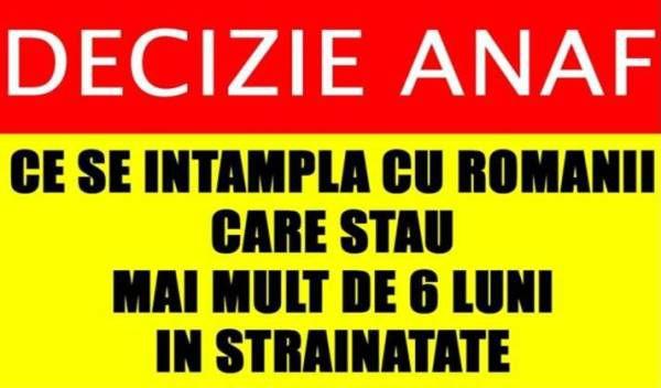 Articolul 59 din Codul Fiscal, prevede ca romanii care pleaca din tara pentru o perioada mai mare de 183 de zile au obligatia sa notifice ANF cu minim 30 de zile inainte de a pleca, pentru a se stabili rezidenta fiscala. Si strainii care intentioneaza sa ramana pe teritoriul tarii au aceeasi obligatie.