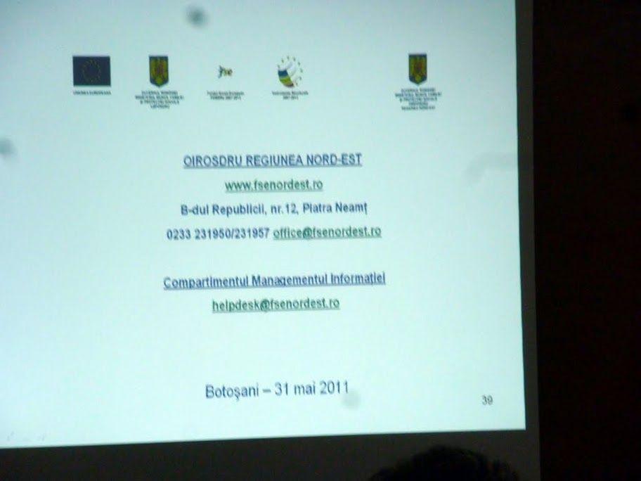 În conformitate cu planul propriu de acţiuni pentru promovarea accesării fondurilor europene în anul 2011, Instituţia Prefectului - Judeţul Botoşani a organizat marţi, 31 mai 2011, începând cu orele 10.00, o sesiune de informare având ca temă Programul Operaţional Sectorial Dezvoltarea Resurselor Umane 2007-2013.