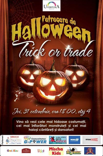 Joi, 31 octombrie, de la ora 18:00 are loc la etajul 4 al Uvertura Mall „Trick or Trade - Petrecerea de Halloween”.
