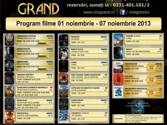În perioada 1-7 noiembrie 2013, la Cine Grand din incinta Uvertura Mall vor rula 19 filme. Vezi care sunt acestea și la ce ore rulează: