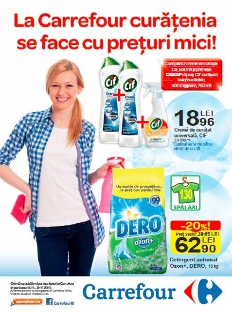 Catalogul de curățenia casei prezintă o gamă largă de produse la cele mai mici prețuri din piață dar și ponturi care îi vor ajuta pe clienții Carrefour să finalizeze curățenia de sărbători în timp util.