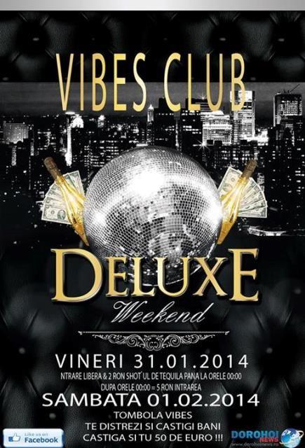 Aceste evenimente, potrivit organizatorilor, vor fi două seri de distracție, într-un program special organizat sub denumirea de „Deluxe weekend”. Vineri, 31 ianuarie 2014, intrarea este liberă, iar oferta atractivă este shot-ul de tequila care până la ora 00:00 este 2 lei. După ora 00:00 intrarea este 5 lei.
