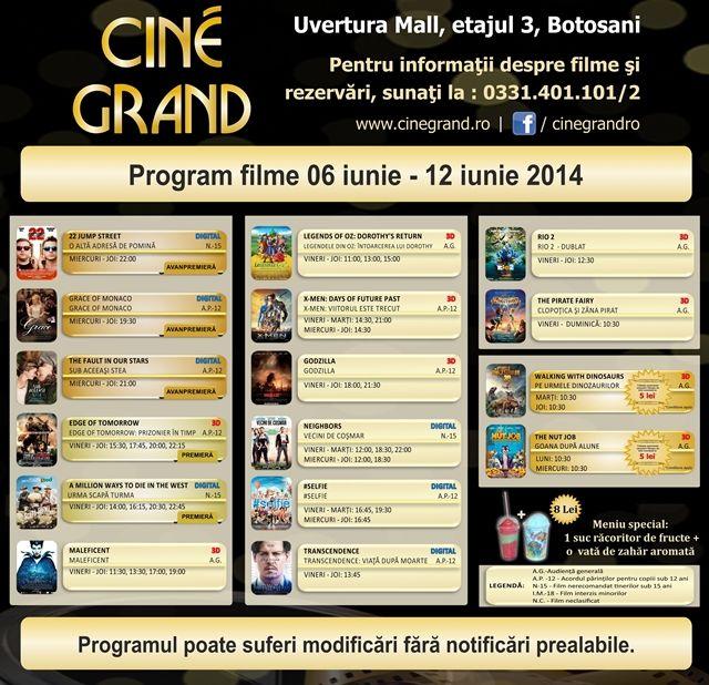 În perioada 6- 12 iunie 2014, la Cine Grand din incinta Uvertura Mall vor rula 13 filme. Vezi care sunt acestea și la ce ore rulează: